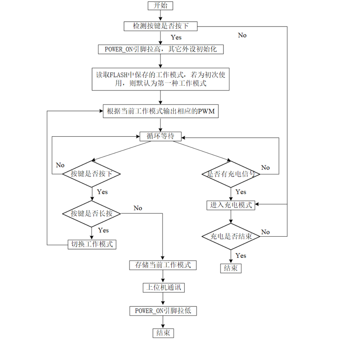 硬件总体设计 智能电动牙刷的主控芯片采用的是的基于 ARM Cortex-M0内核的 CKS32F030K6U6 。该芯片工作频率高达 48 MHz,拥有 1 个 12 位 ADC,1 个 USART,1 个 I2C 接口,4 个通用定时器和 1 个高级 PWM 控制定时器,可以满足智能电动牙刷的设计需求。