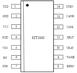 SIT1043是一款应用于 CAN 协议控制器和物理总线之间的接口芯片,支持 5Mbps 灵活数据速率(Flexible Data-Rate),具有在总线与 CAN 协议控制器之间进行差分信号传输的能力。SIT1043总线端口耐压可达-58V至+58V,接收器共模输入电压达到-30V至+30V,适用于 12V 或 24V 应用系统。SIT1043采用多电源供电,拥有多种系统保护和诊断功能以提高器件和 CAN 的稳定性。另外,SIT1043拥有五种工作模式:正常工作模式、静音模式、待机模式、睡眠等待模式和睡眠模式,在低功耗模式下支持本地唤醒与远程唤醒;所提供的低功耗模式管理可极大节省 CAN 总线应用系统的电力,SIT1043带INH脚功能,能够控制给系统供电的LDO,使系统在休眠模式下关闭LDO输出,达到最低功耗,以满足客户的低功耗需求。